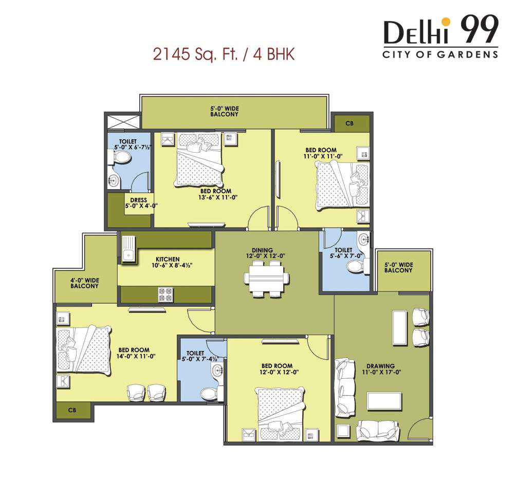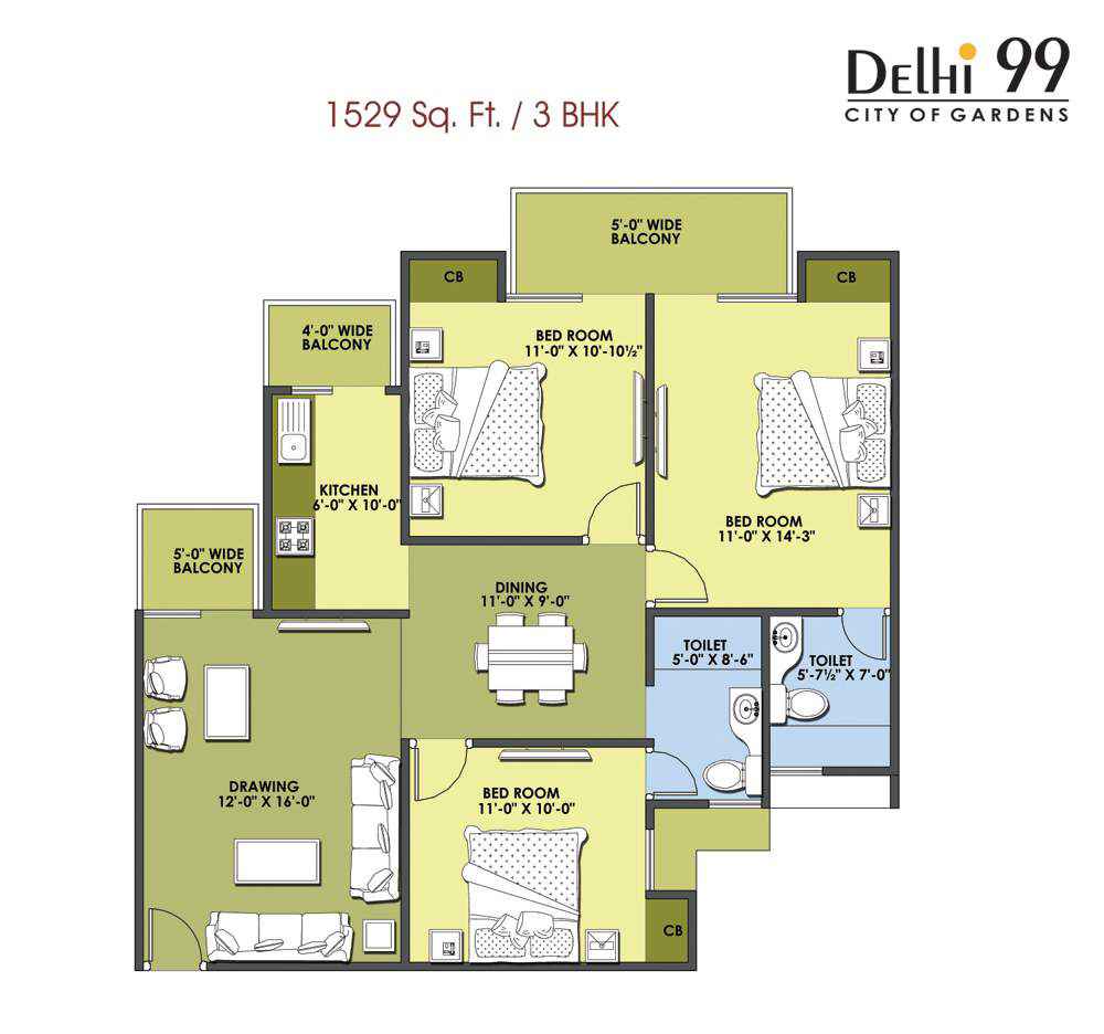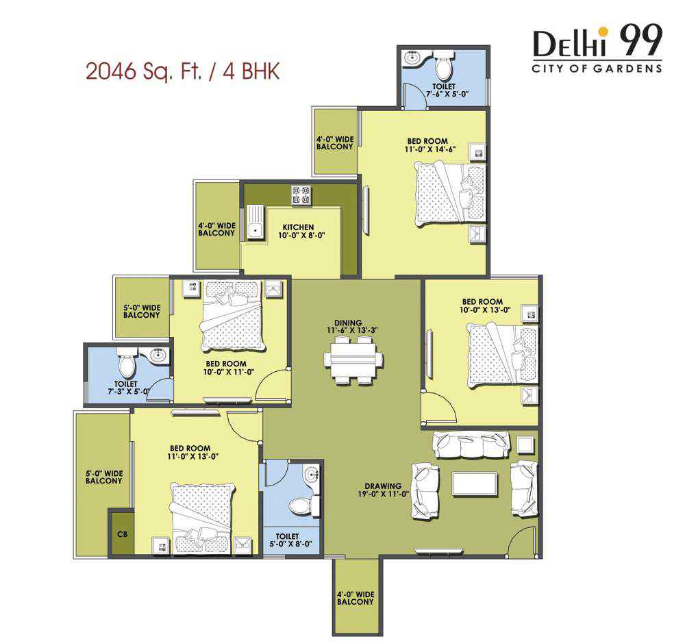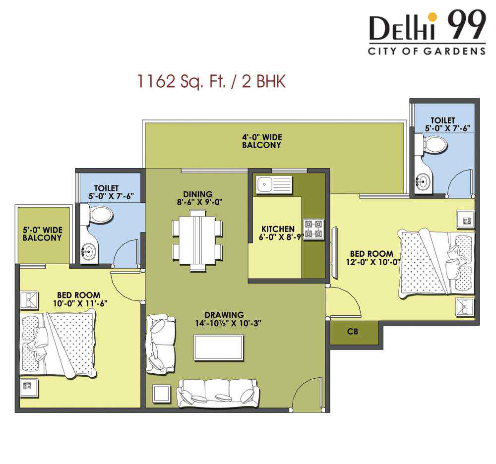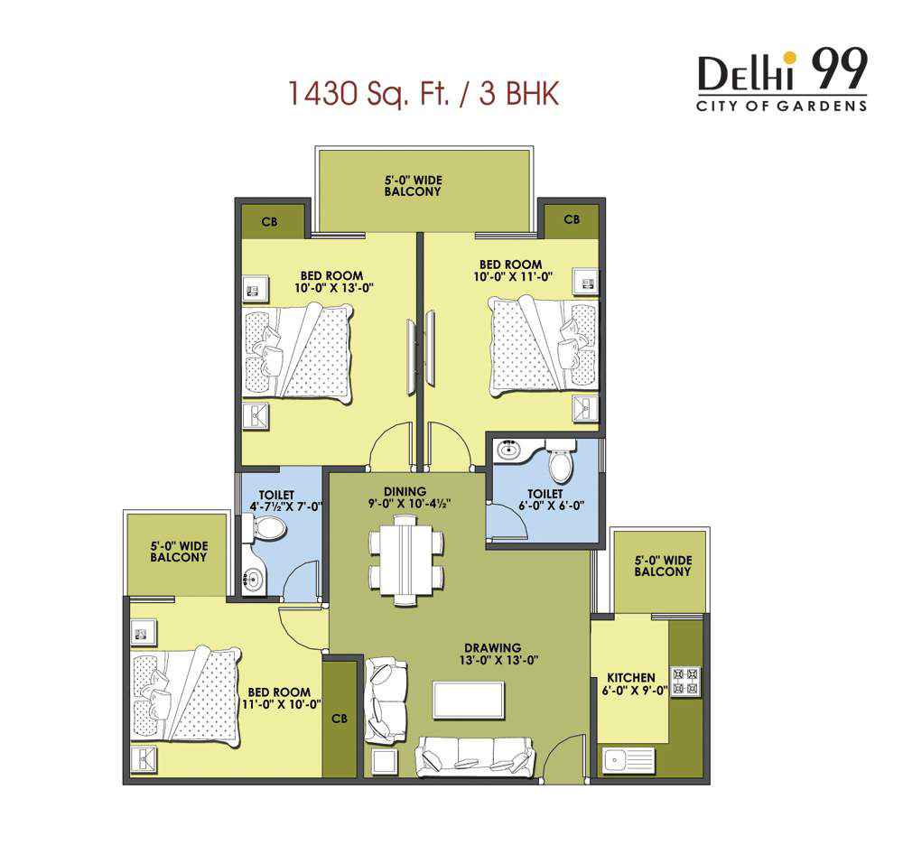 Delhi 99 offers you a range of 2, 3 and 4 bedroom apartments in various sizes with one thing in common: "The Stamp of Class and Affordability".