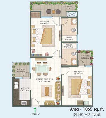 1065-Sq. Ft./ 2 BHK